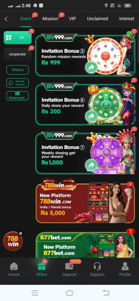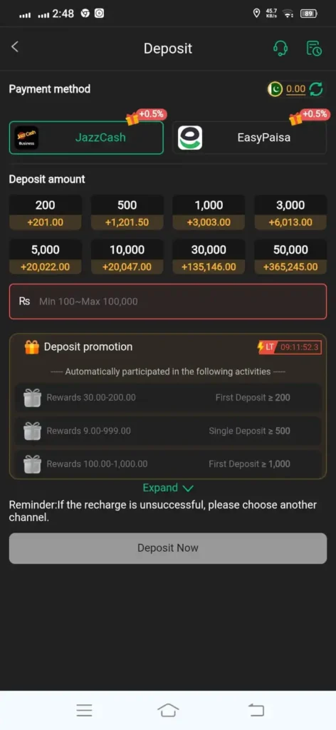 BV999 supports Easypaisa and JazzCash. This ensures quick and convenient transactions.