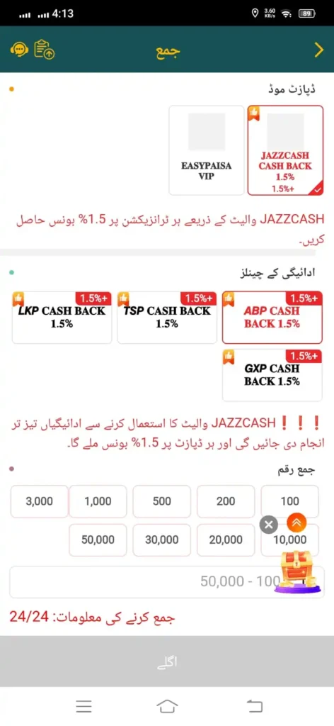 One major advantage is quick withdrawal. Players can transfer their earnings through Easypaisa and JazzCash.
