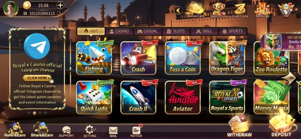 Royal X Casino Game is described as an online gaming platform. It usually offers multiple categories of games in one app. These may include slot-style games, card games, sports-based predictions, and other interactive activities.
