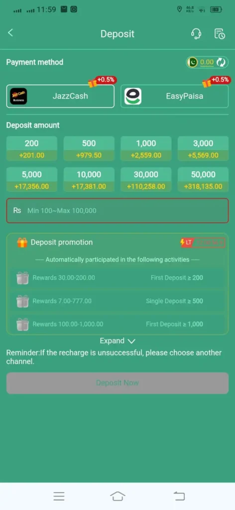 Users can deposit and withdraw money using Easypaisa and JazzCash. This makes transactions fast and secure.